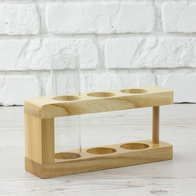 Дерев`яна підставка зі скляним циліндром. Стане оригінальним органайзером для зберігання канцелярії або не менш оригінальною вазою для квітів або сухоквітів.