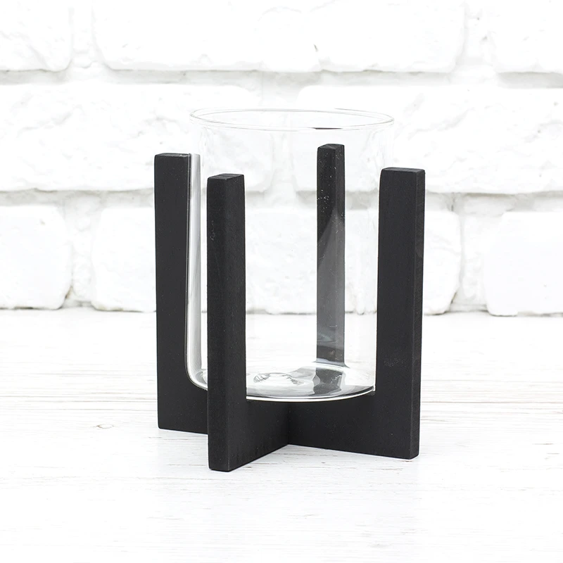 Декоративний підсвічник з натурального дерева, складається з двух частин, дерев`яної хрестовини та скляного стакану.