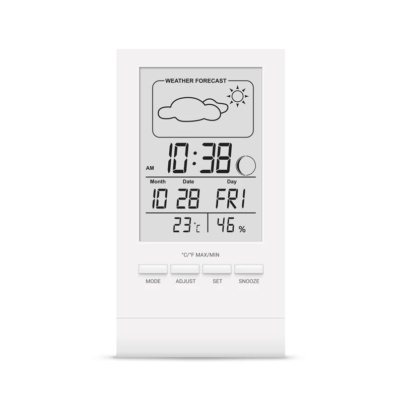 Термо-гігрометр Т-14 - допомогає відстежувати дані про домашній мікроклімат. На екрані приладу відображаються не лише інформація о температурі та вологості, але і фактична дата, час та фаза луни. Виконує функцію будильнику.
