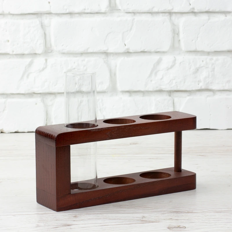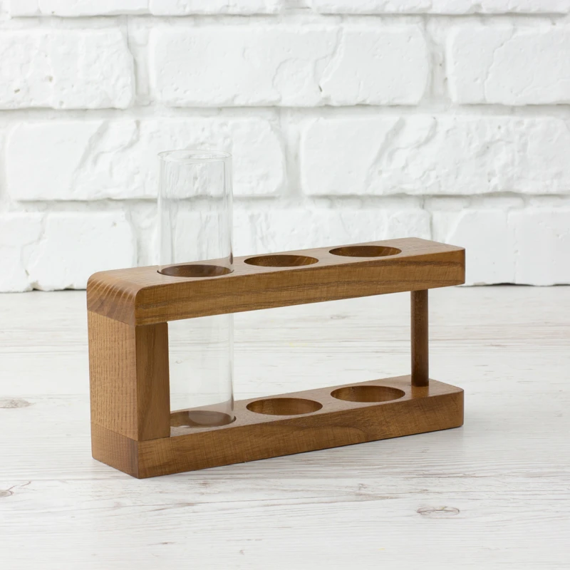 Дерев`яна підставка зі скляним циліндром. Стане оригінальним органайзером для зберігання канцелярії або не менш оригінальною вазою для квітів або сухоквітів.