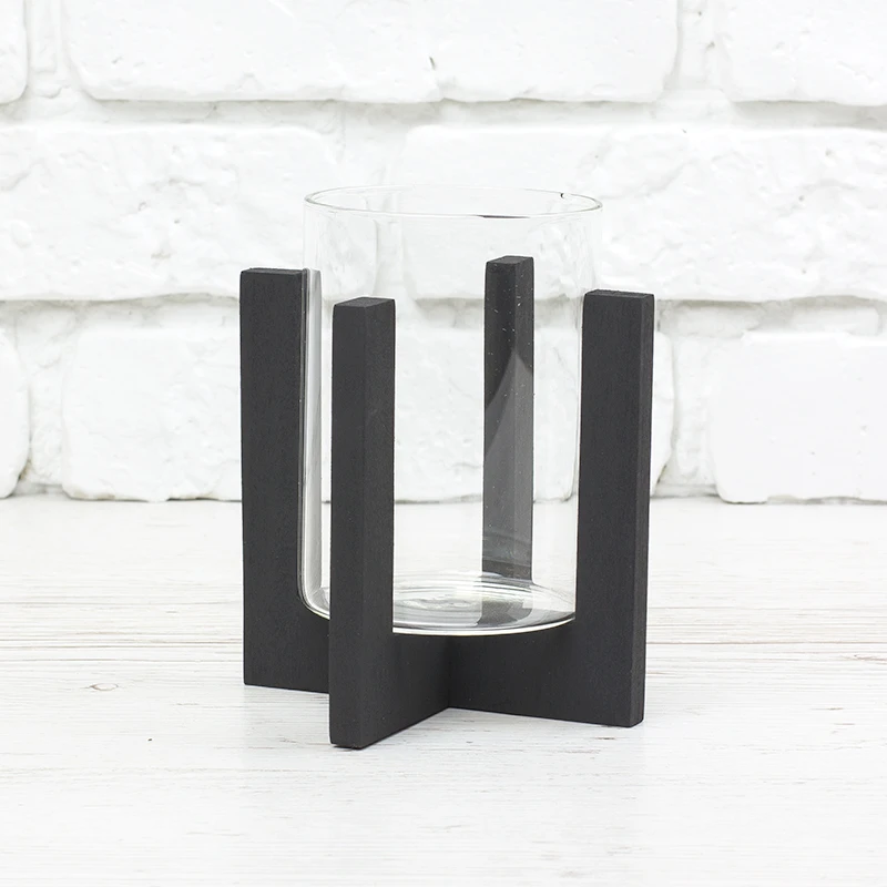 Декоративний підсвічник з натурального дерева, складається з двух частин, дерев`яної хрестовини та скляного стакану.