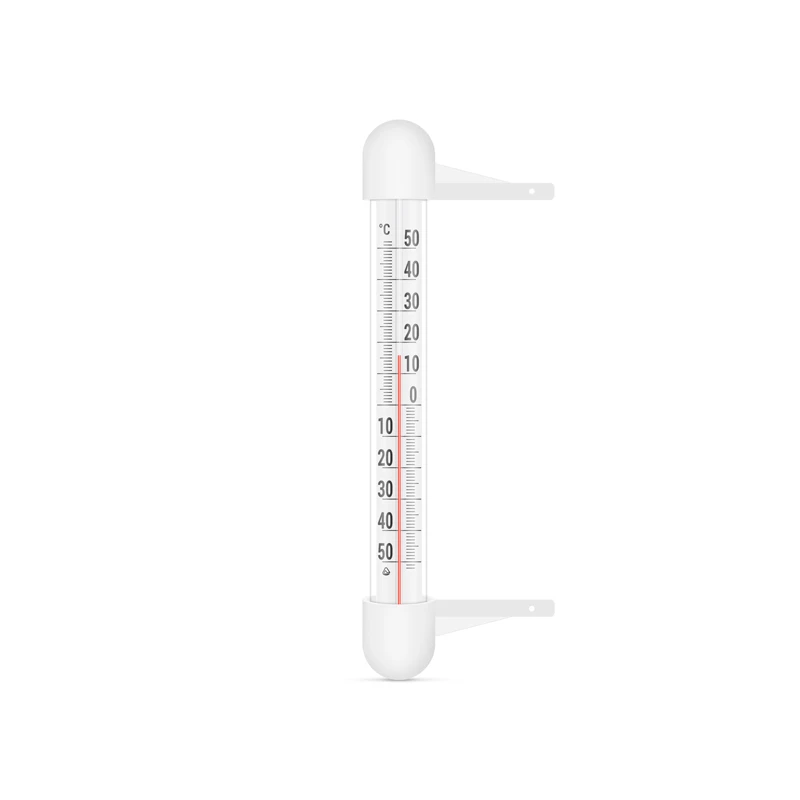 Класичний термометр у скляному тубусі. Призначений для дерев`яних віконних рам, кріпиться з допомогою цвяшків. Велика, цітка шкала робить цей термометр зручним у використанні.